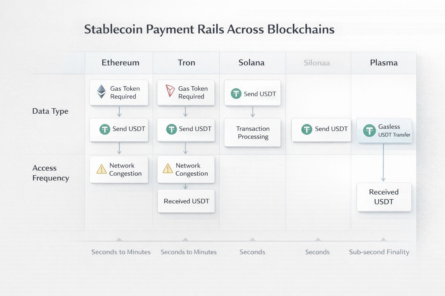 One chart lines up the average settlement times and transaction costs for USDT on Ethereum, Tron, Solana and Plasma. You can really see the differences at a glance. Another chart breaks down where people are actually sending stablecoins showing just how much USDT has taken over compared to regular crypto transfers and for folks who want the details a simple table lays out what users need on each chain like whether you need a native gas token or not so it's easy to compare.