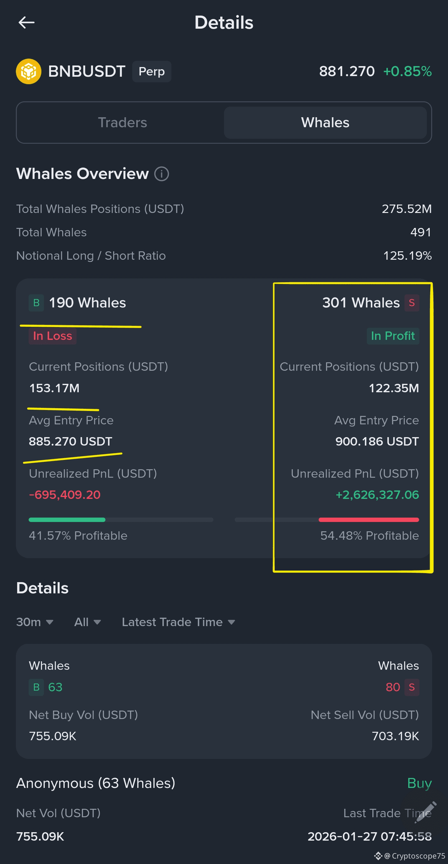 This dynamic points to a high-tension zone: structurally supported price action versus profitable whale shorts. A sustained hold above trend support could pressure short positions, while failure to maintain this base would validate continued downside control.