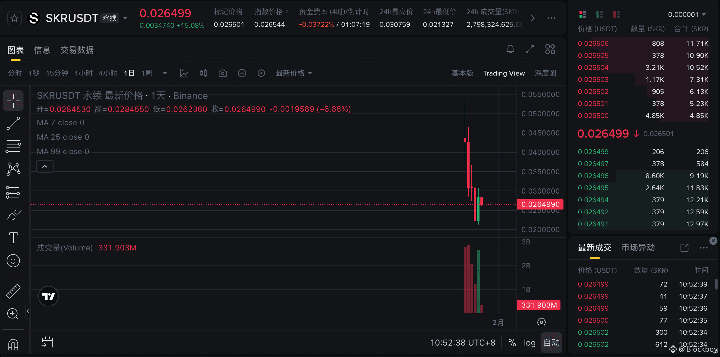 目前的 $SKR 正处于 “情绪退潮”与“价值重锚” 的关键转换期。