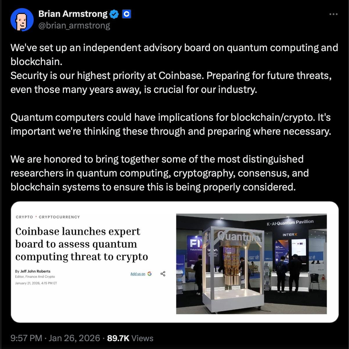 По словам Армстронга, консультативный совет объединяет ведущих исследователей в области квантовых вычислений, криптографии, механизмов консенсуса и блокчейн-систем. Цель не в том, чтобы поднимать тревогу, а в том, чтобы убедиться, что вопрос изучается строго и ответственно.