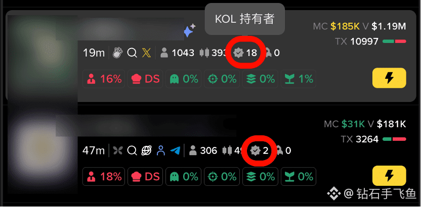 好的代币在KOL眼里那绝对是香饽饽,没有理由不购买,如果你看到一个代币KOL人数为0,那么你就要担心了。