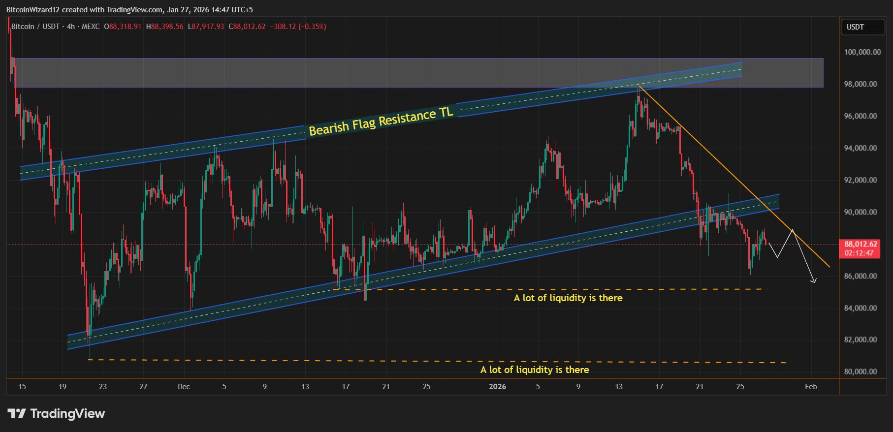 Возможно, мы увидим, как BTC снова протестирует уровень сопротивления TL и снова упадет