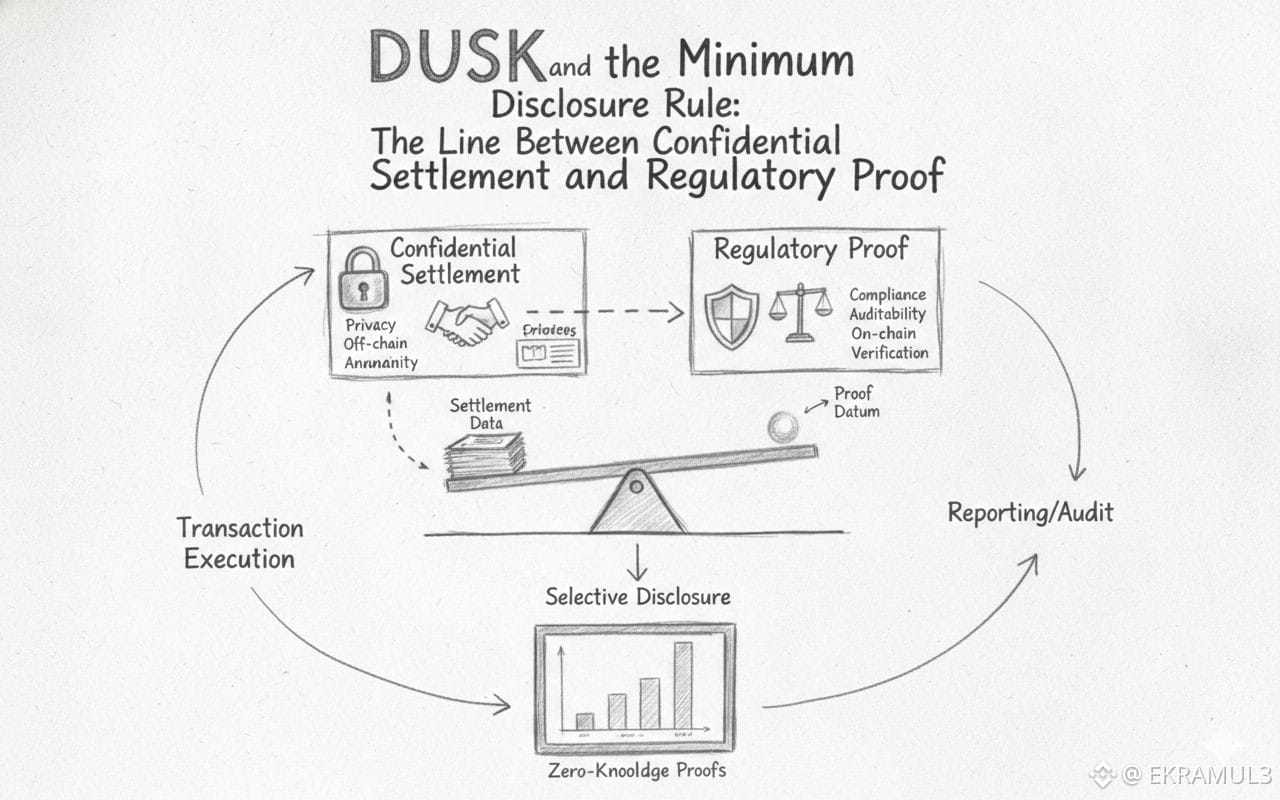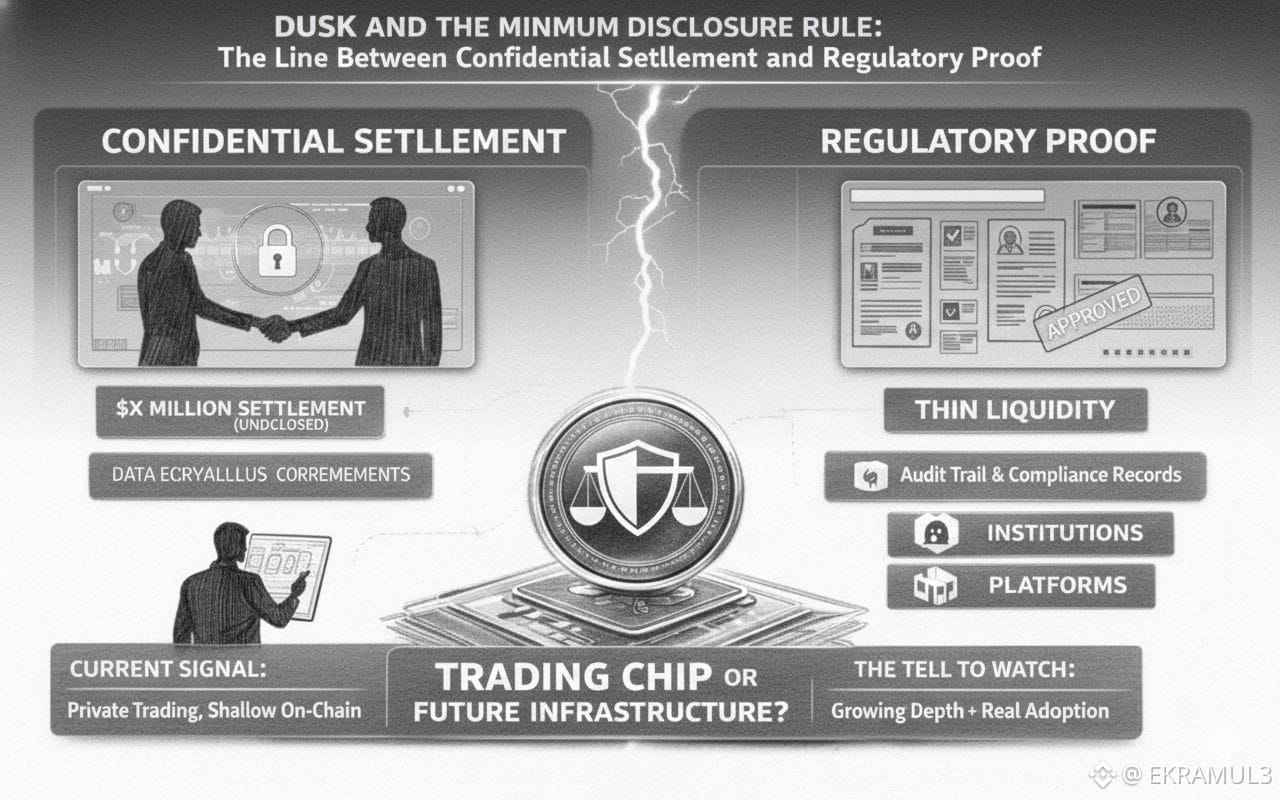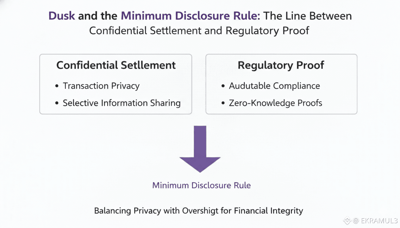 If Dusk’s model scales, the irony is that the crypto industry will eventually admit the rule was never optional. The first time a tokenized bond reprices because settlement flows leaked to the public, or a fund loses alpha because portfolio shifts became visible mid-rebalance, or a corporate issuance fails because beneficial ownership attribution became public, the market will rediscover the minimum disclosure rule the hard way.