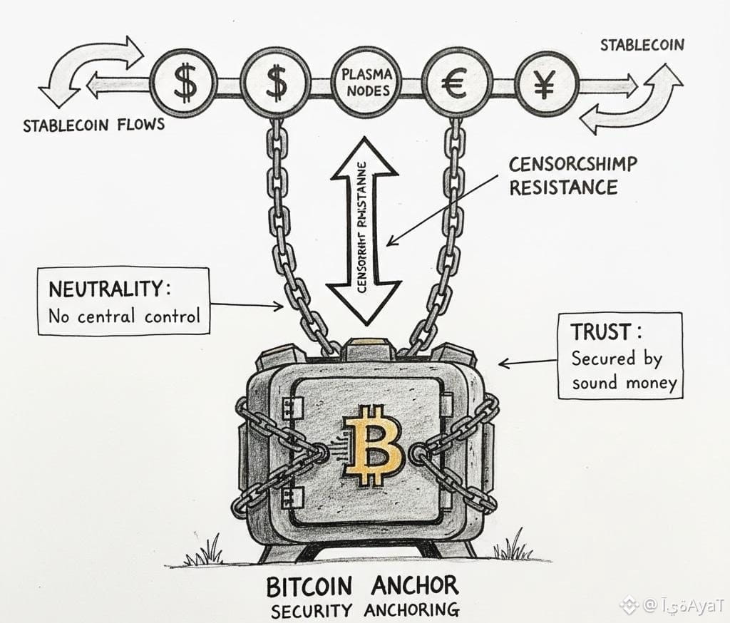 The most unconventional element, however, lies beneath the surface. By anchoring security to Bitcoin, Plasma borrows credibility from the most battle-tested neutral system in crypto. This is not about copying Bitcoin’s monetary policy, but about inheriting its political properties. Bitcoin’s resistance to capture and censorship gives Plasma a gravitational center that is difficult to bend toward short-term interests. For stablecoins used in global payments, neutrality is not philosophical—it is operationally essential.