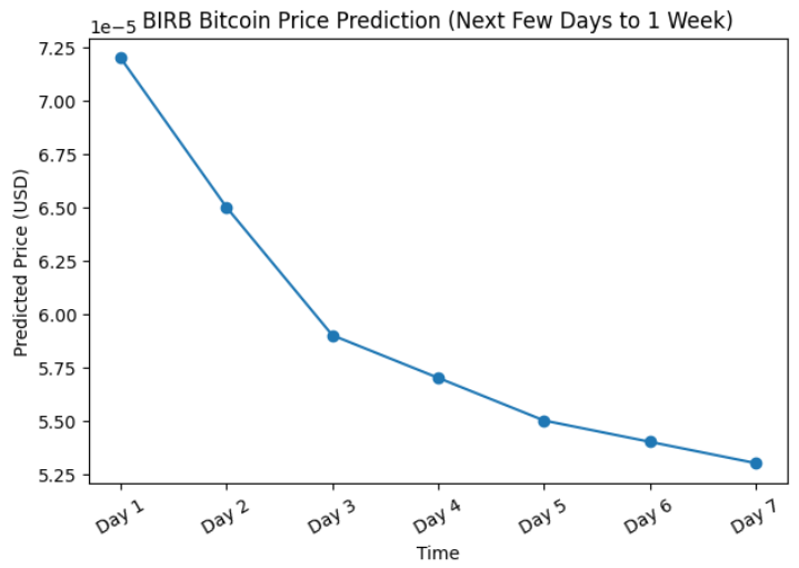 Краткосрочный ценовой диапазон для типичной недели (включая ближайшие дни) прогнозируется примерно между $0.000052 – $0.000072 (как нижний, так и верхний пределы) в зависимости от рыночных условий. �