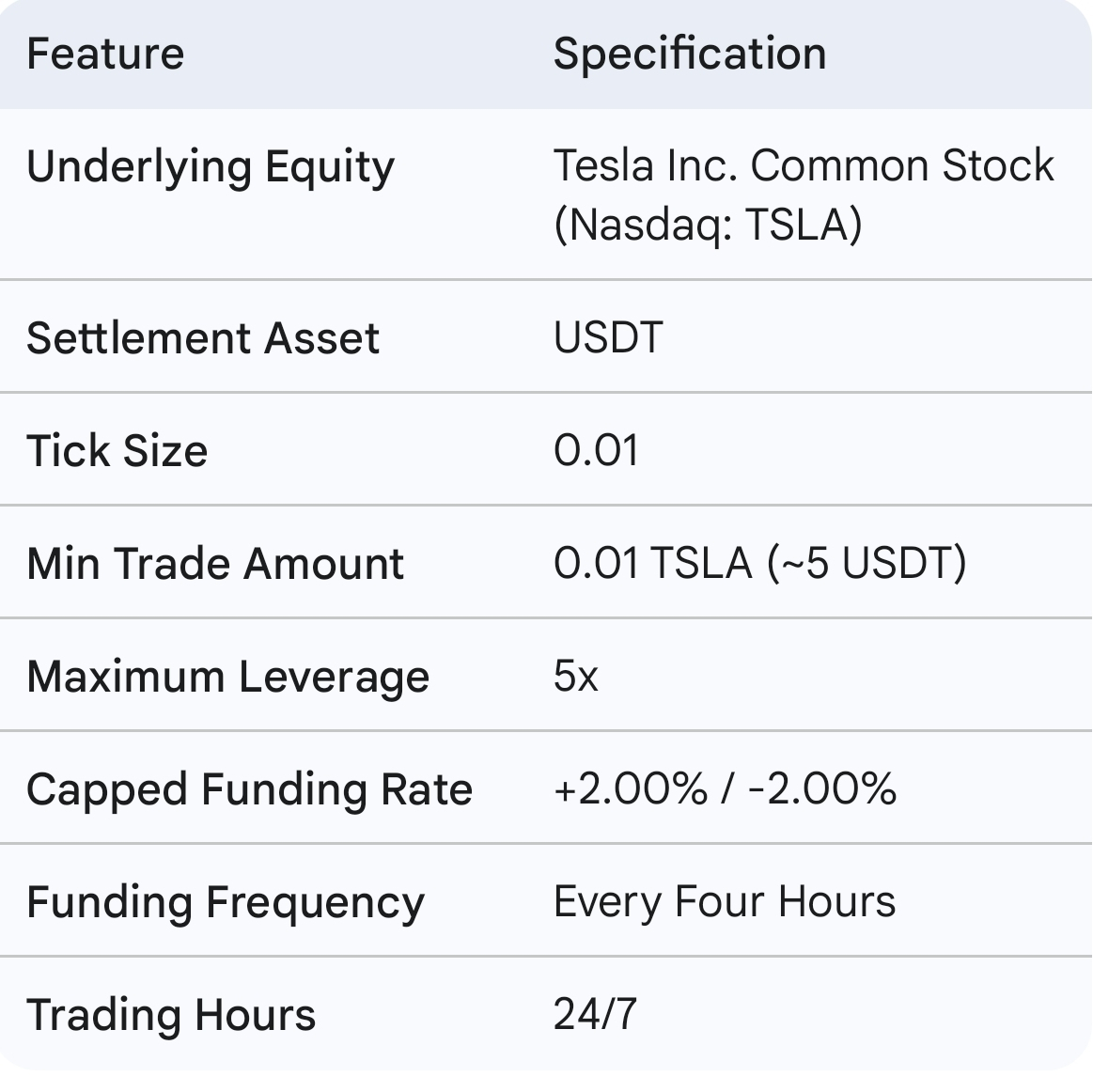 Контракт TSLAUSDT спроектирован для воспроизведения ценового обнаружения Tesla в рамках крипто-нативной структуры. В отличие от ограниченной 6.5-часовой торговой сессии Nasdaq, это бессрочное предложение предоставляет круглосуточный доступ. Это устраняет "риски разрыва" — ценовые скачки, которые происходят, когда новости появляются, пока традиционные рынки закрыты, позволяя трейдерам мгновенно реагировать на ночные отчеты о прибылях или коммуникации генерального директора.