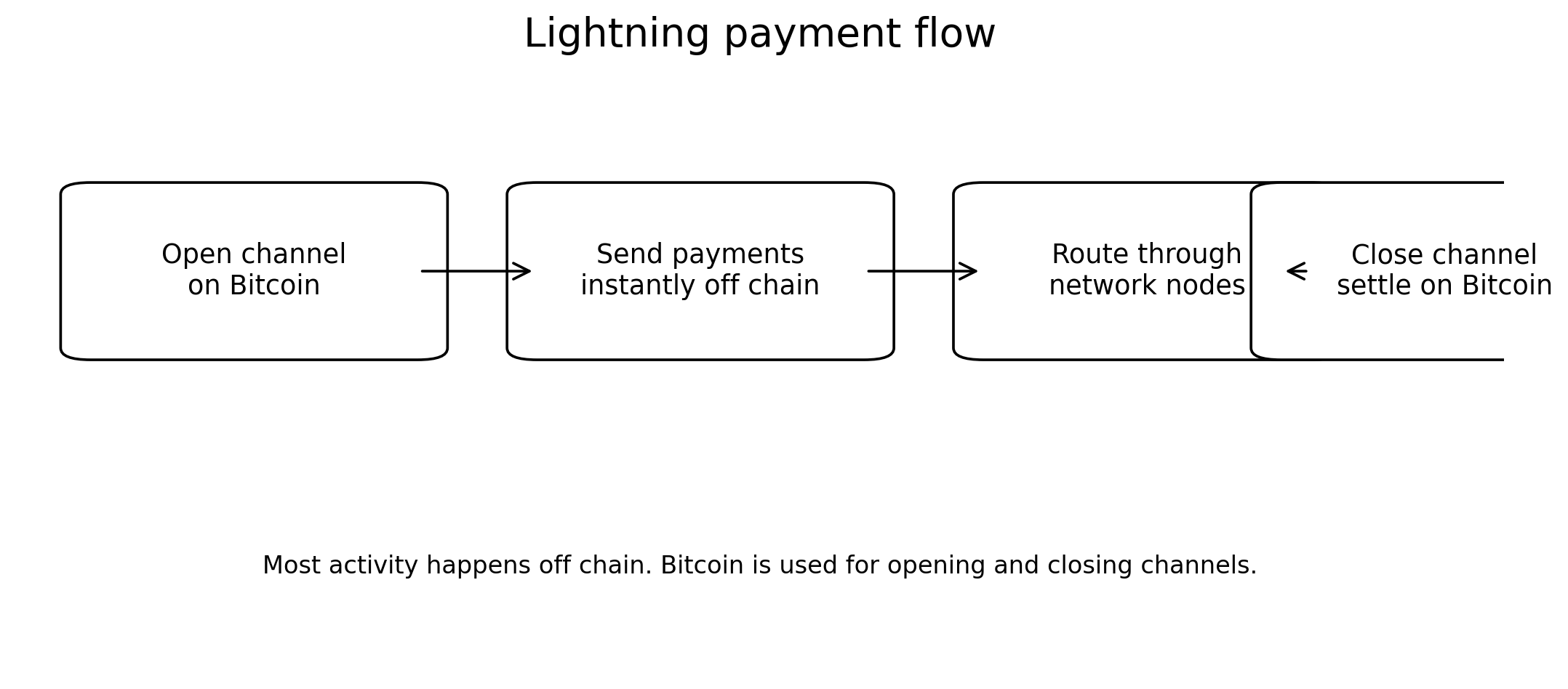 Многие образовательные источники описывают Лайтнинг как протокол 2 уровня, построенный на Биткойне, который позволяет осуществлять недорогие почти мгновенные транзакции вне цепочки с использованием платежных каналов, при этом Биткойн используется для расчетов.