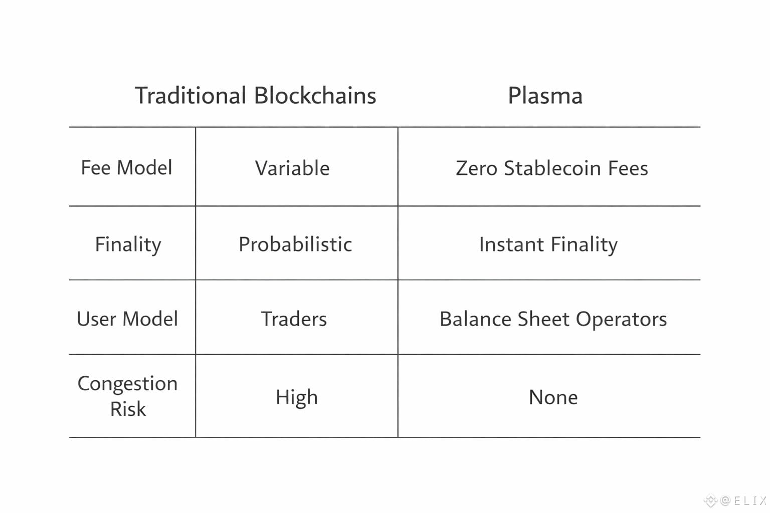 Most blockchains implicitly treat every user as a trader. Fees fluctuate, congestion is unpredictable, and finality is probabilistic. These dynamics may suit speculation, but they break down completely for financial operations. Treasury teams, payroll departments, and compliance officers require certainty. Plasma reorients the model by treating users as balance-sheet operators. Its goal is not market excitement, but to make money boring again—reliable, predictable, and explainable to auditors.