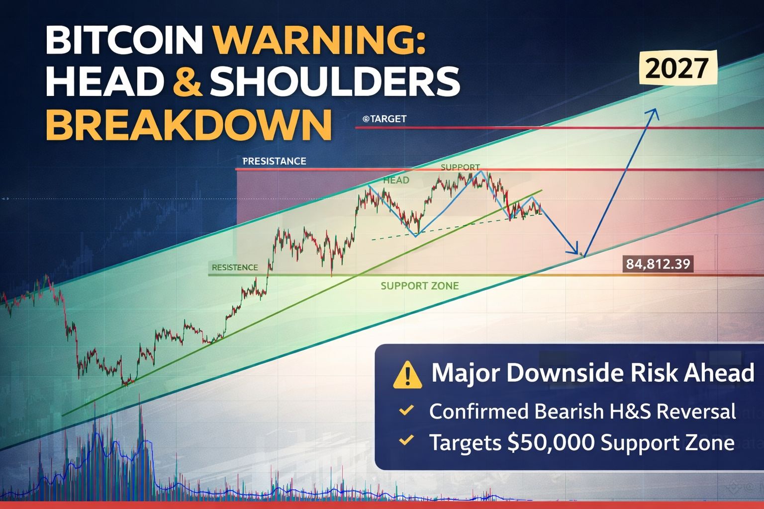 Недавнее ценовое движение подтверждает активацию медвежьей модели "Голова и Плечи" (H&S), одной из самых известных и надежных моделей разворота в техническом анализе. Этот этап сильно указывает на то, что предыдущий бычий импульс ослаб и что продавцы начинают контролировать рынок.