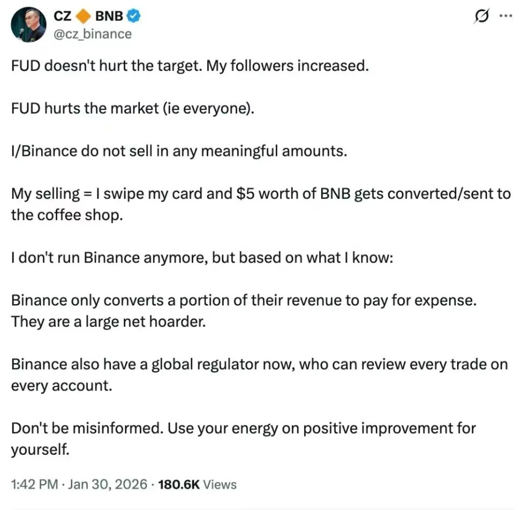 CZ прямо заявляет: "Я не часть вашего 'торгового нарратива'." Эта фраза достойна размышлений для каждого участника рынка.