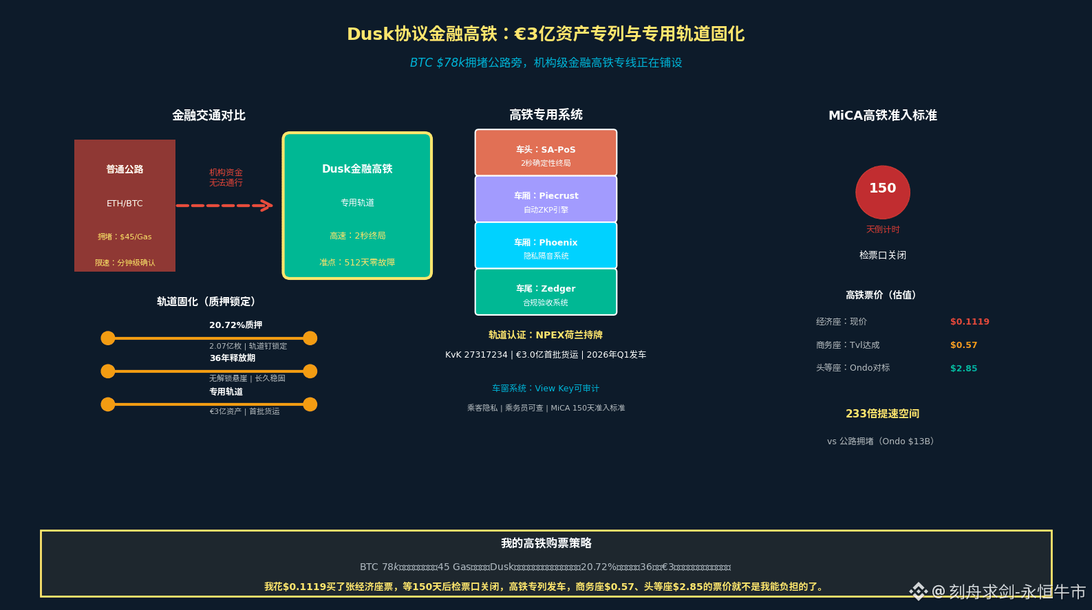 Hyperstaking短期APY 95%,我拿了5%仓位先质押,吃着利息等Q1上线。如果价格跌到$0.10以下,我再加仓;如果NPEX合作生变,我立刻跑。这不是信仰,是算账:$0.1119的门票 vs €3亿资产管道,233倍修复空间,150天监管套利窗口。