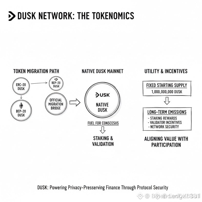 Then there is the token side, but I think it is only useful when it is tied back to the system. DUSK exists as ERC20 and BEP20 representations with a migration path to native DUSK on mainnet through the official mechanism described in documentation. The tokenomics model is built around a fixed starting supply and long-term emissions for staking rewards, aligning the token with network security participation rather than pure narrative value. If you are tracking the project seriously, the token story makes the most sense when you view it as the fuel for consensus and the incentive layer for validators and stakers, not as a separate speculative universe.