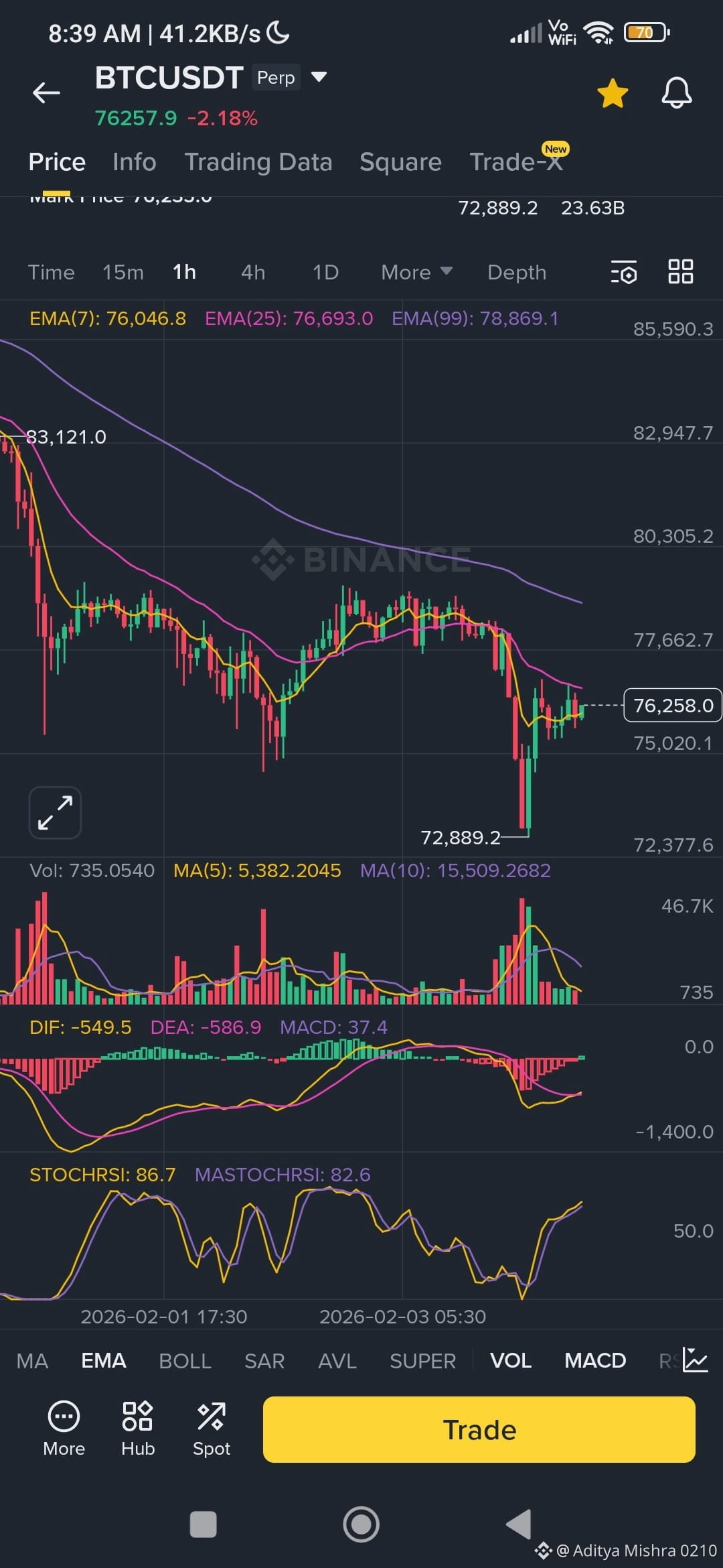 Watch the $73k Level: If Bitcoin closes a daily candle below $73,000, expect a fast slide toward $68,000. If it holds, the "rebound to $80k" trade is on the table.