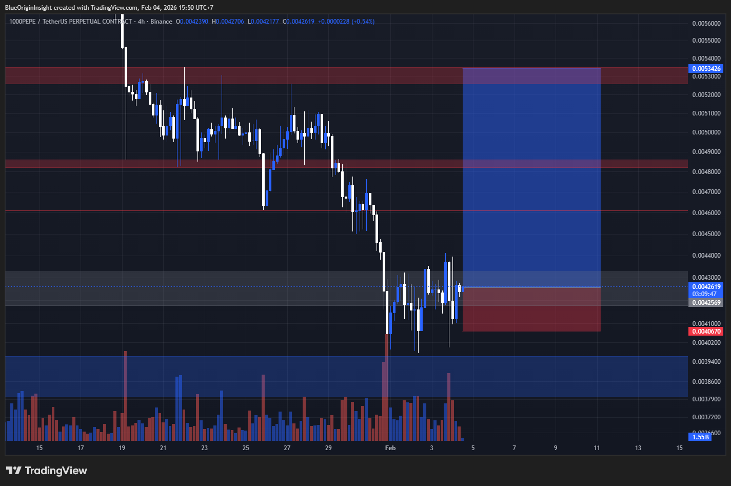 $PEPE держится выше ключевой зоны краткосрочной поддержки после недавнего отката, показывая признаки стабилизации и потенциального бычьего продолжения. Пока цена остается выше уровня аннулирования, эта установка благоприятствует отскоку к следующей зоне ликвидности.