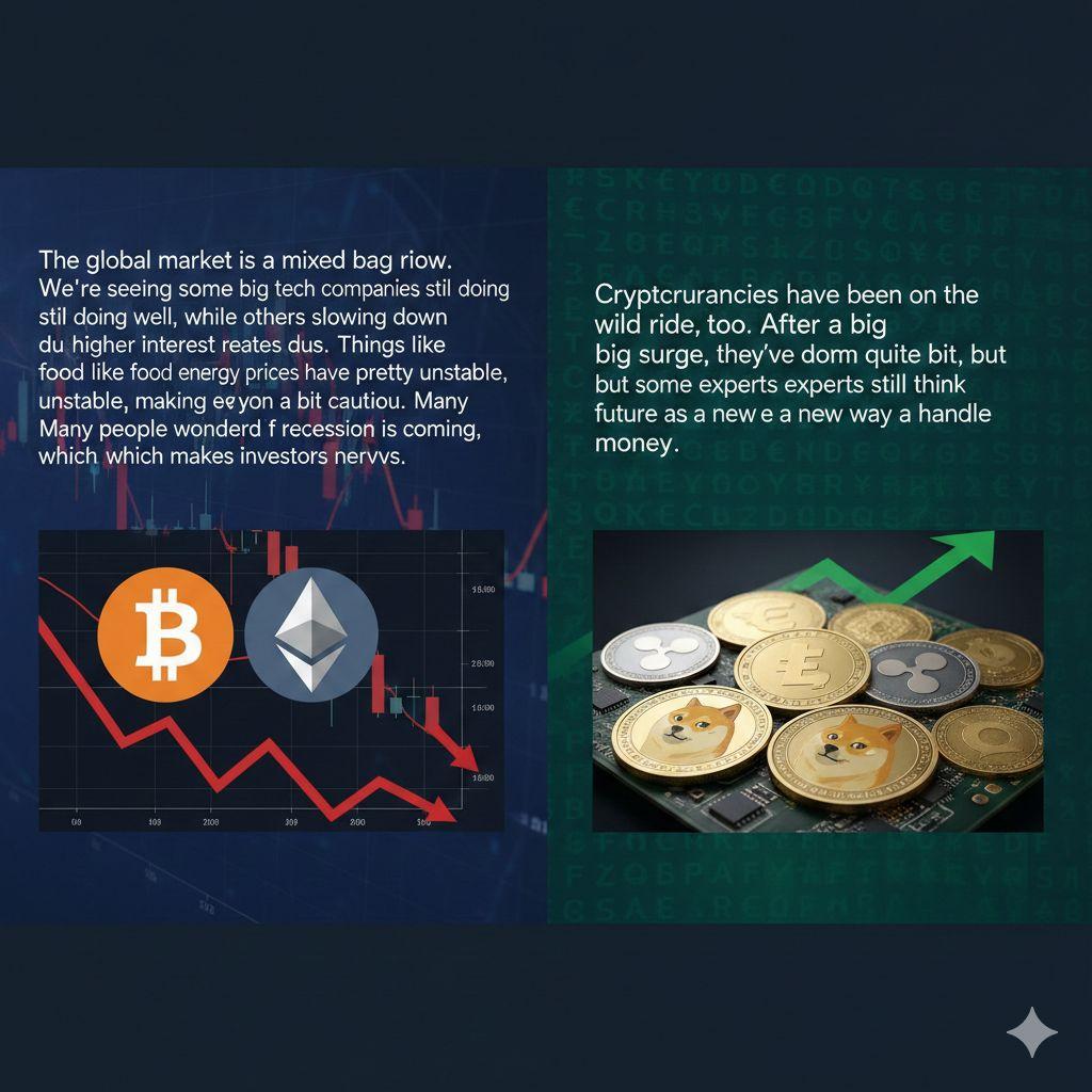 Глобальный рынок сейчас представляет собой смешанную картину. Мы видим, что некоторые крупные технологические компании по-прежнему чувствуют себя хорошо, в то время как другие замедляются из-за более высоких процентных ставок. Цены на продукты питания и энергоносители были довольно нестабильными, что заставляет всех проявлять осторожность. Многие люди задаются вопросом, не наступает ли рецессия, что делает инвесторов нервными.