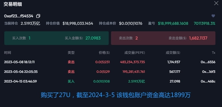 PEPE был выпущен в цепочке ETH в апреле 2023 года. Цена открытия составляла 10 (0)1, а текущая цена — 5 (0)75.
