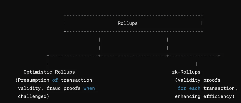В рамках технологии Rollup выделяются две основные категории: оптимистический (Optimistic) Rollup и с нулевым разглашением (zk) Rollup. Каждый из них предоставляет разные методы проверки транзакций для удовлетворения различных потребностей сообщества разработчиков и экосистемы dApp.