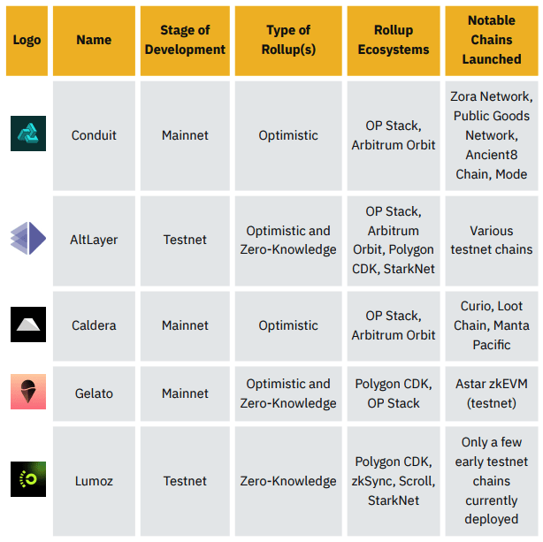 Индустрия RaaS быстро расширяется, и на переднем плане находится несколько инновационных проектов. В этом высококонкурентном пространстве такие проекты, как Conduit, Caldera и Gelato, занимают свое уникальное положение. AltLayer занял уникальную позицию на рынке RaaS, уделяя приоритетное внимание универсальности и обеспечивая превосходную поддержку широкого спектра протоколов и функций.
