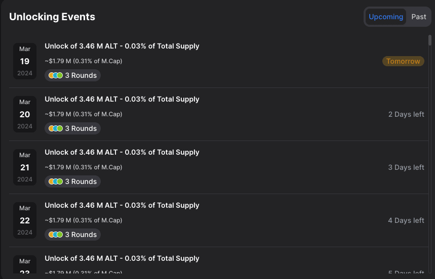- Только 11% от общего количества токенов AltLayer в настоящее время находится в обращении, что может привести к инфляционному давлению, если рыночная капитализация не поспевает за ростом предложения токенов, особенно если рост спроса отстает.