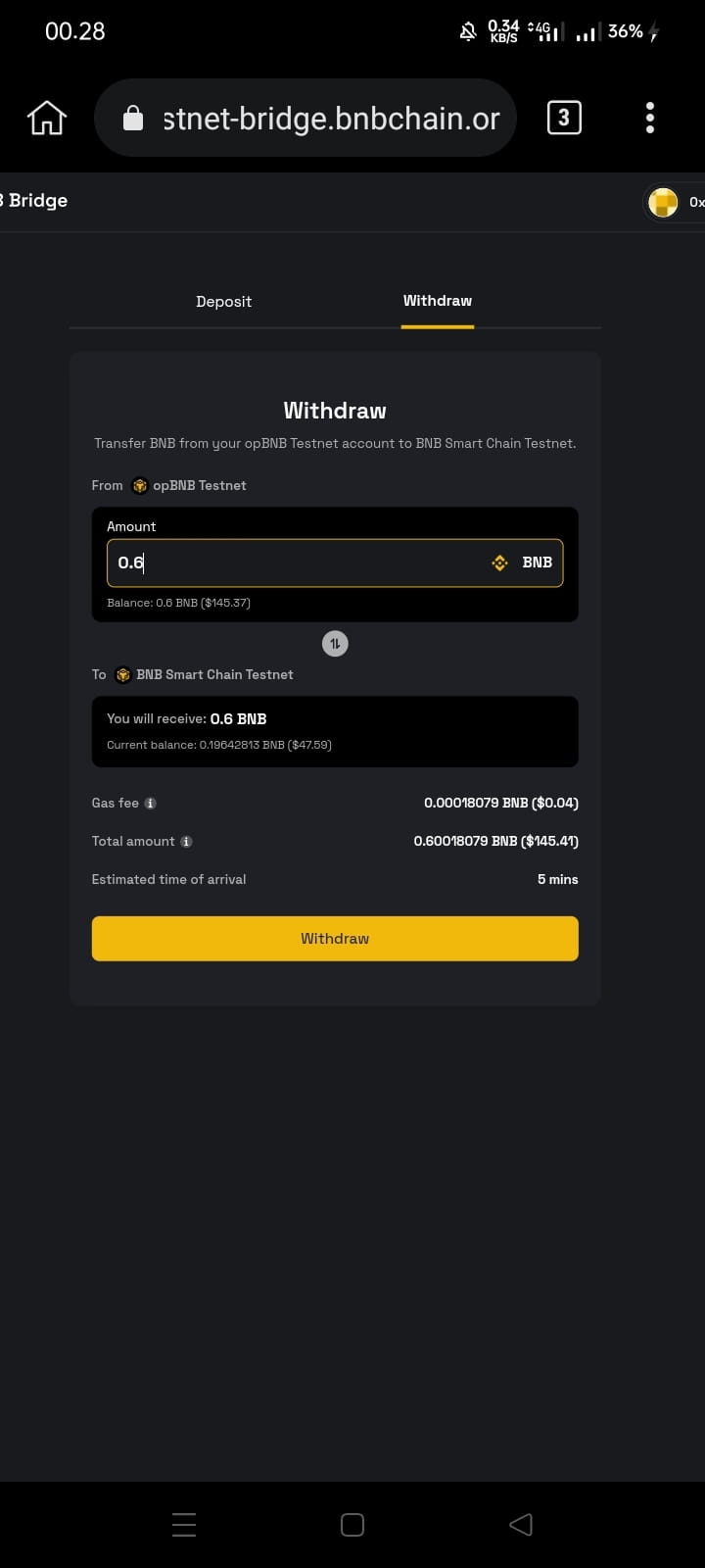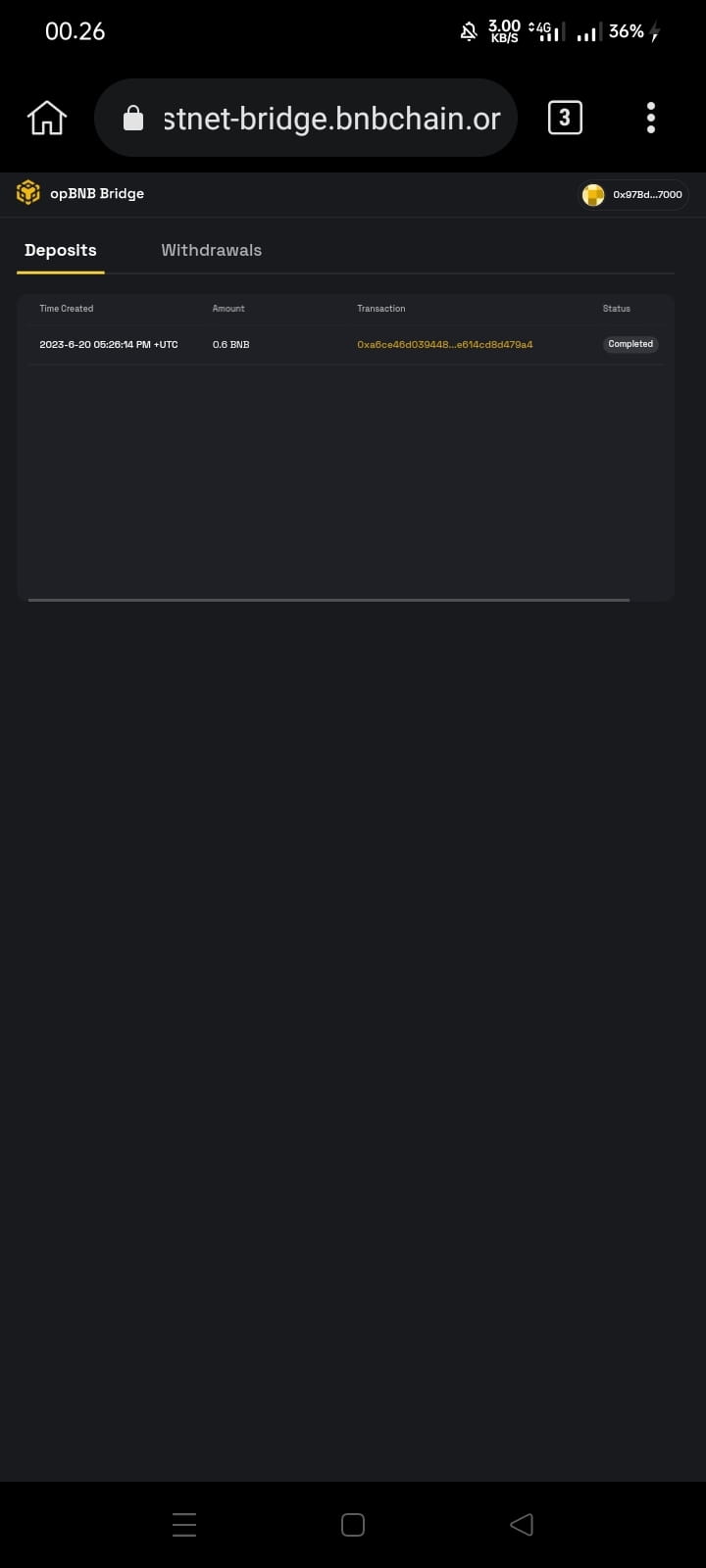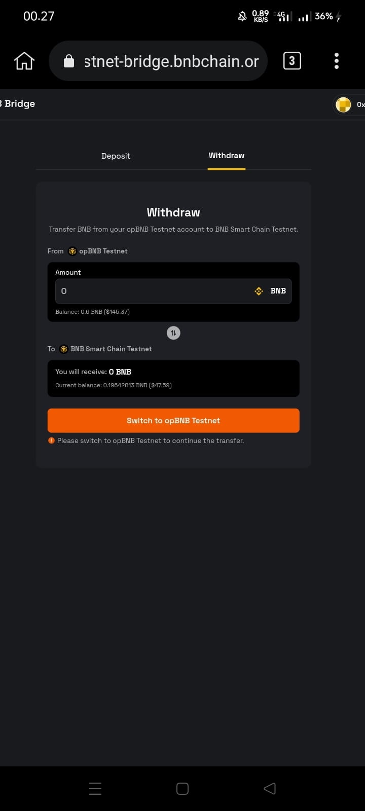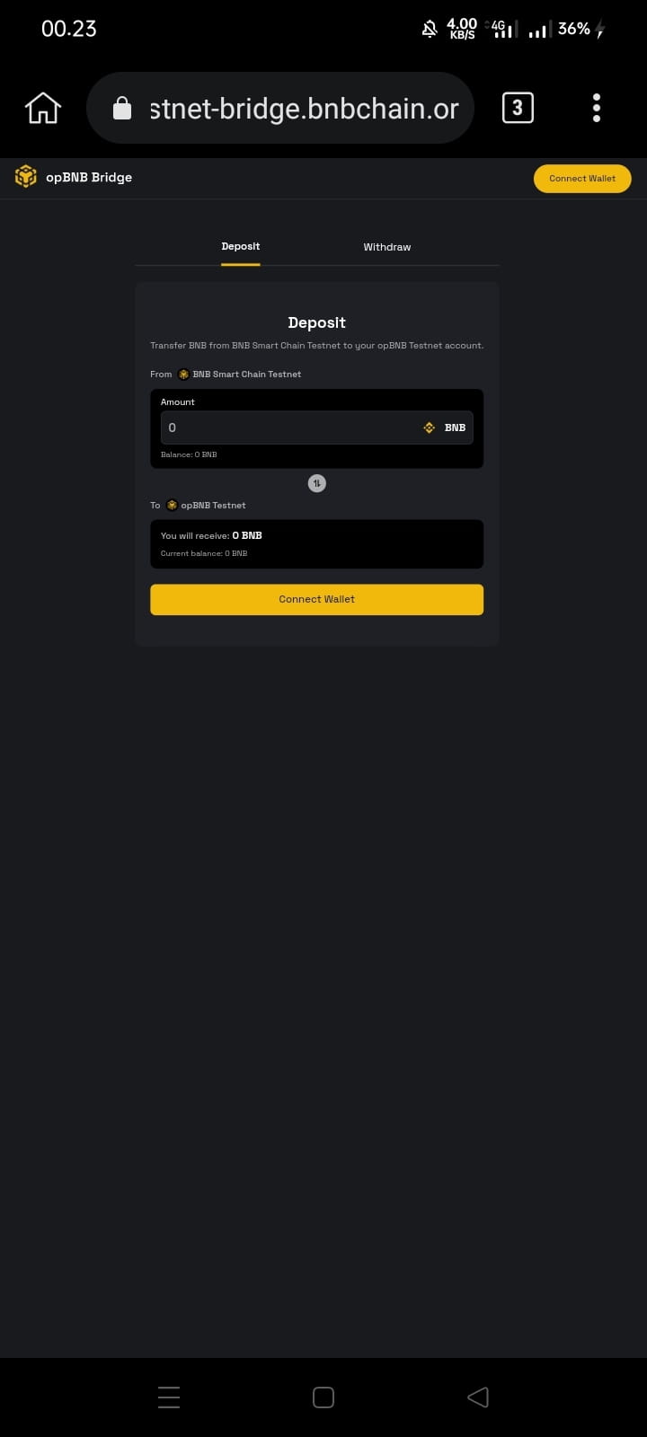 И мы переходим к следующему этапу, а именно Мост или изменение Баланса TBNB на OPBNB через веб-сайт, который был уведомлен BNB Chain, а именно