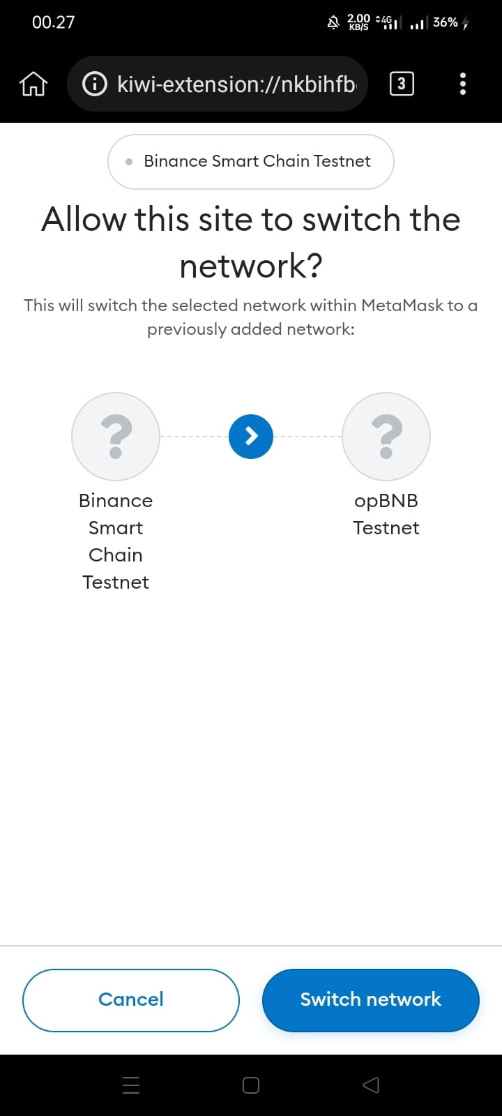 Затем нажмите «Переключить сеть», чтобы добавить сеть OpBNB в нашу метамаску. Чтобы мы могли видеть наш баланс OpBNB и могли переходить от TBNB к OPBNB и наоборот от OpBNB к TBNB.