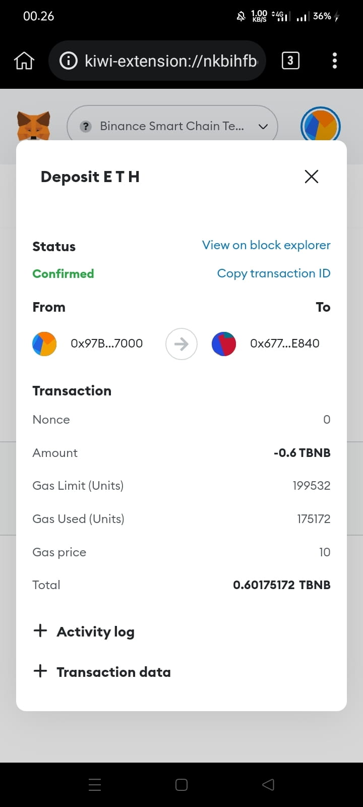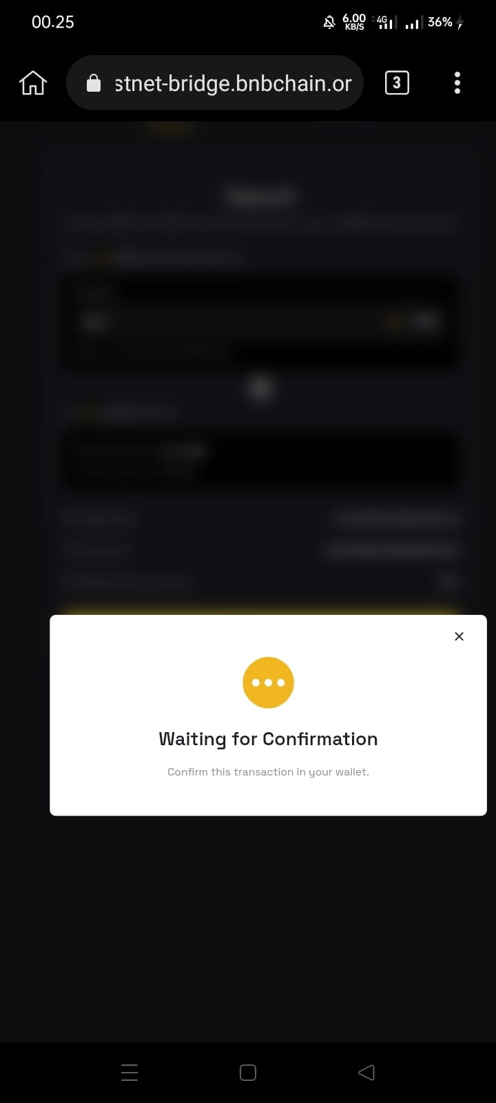 Затем подтвердите транзакцию по изменению TBNB на OpBNB.