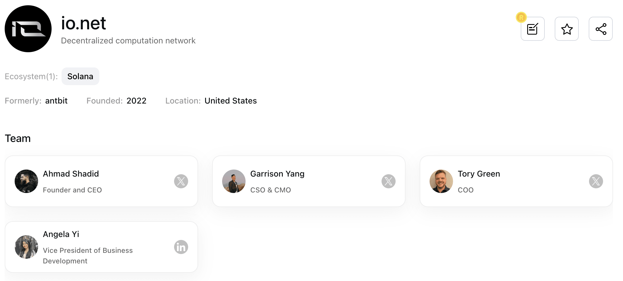 io.net был основан Ахмадом Шадидом, который на основе своего опыта работы инженером количественных систем в WhalesTrader осознал ограничения традиционных облачных сервисов и криптопроектов в предоставлении эффективных, гибких и экономичных вычислительных ресурсов графического процессора.