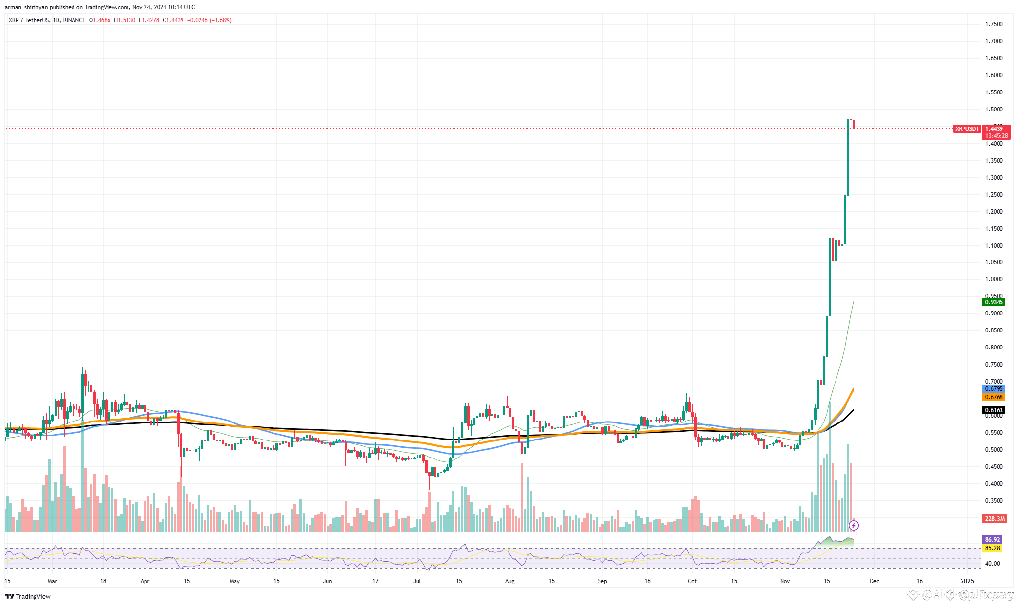 The failure to maintain levels above $1.5 could signal waning buying pressure or an overextended rally. This type of market behavior typically leads to heightened volatility as traders reassess their positions. The $1.5 mark remains a pivotal resistance on the chart. A decisive breakout above this level, accompanied by sustained trading beyond $1.6, could set the stage for XRP to challenge $1.8 and potentially $2 in the weeks ahead. Achieving this would confirm that buyers have reasserted control, signaling that bullish momentum is intact.