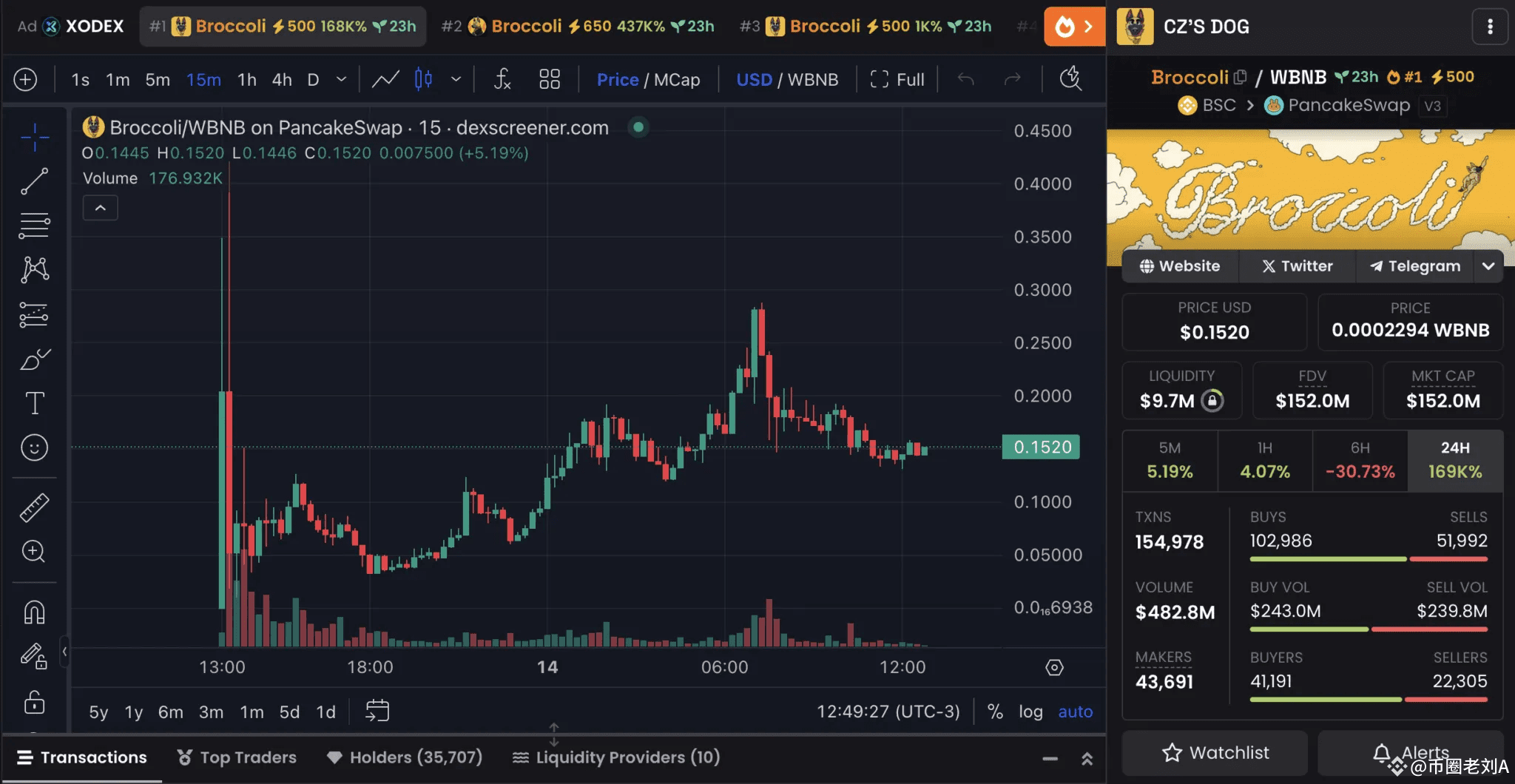 BROCCOLI 上线仅一天便吸引了超过 35,000 名持有者,迅速成为本周 BNB 链上最大的新品种之一,同时也是整个加密市场中最受关注的新币之一。