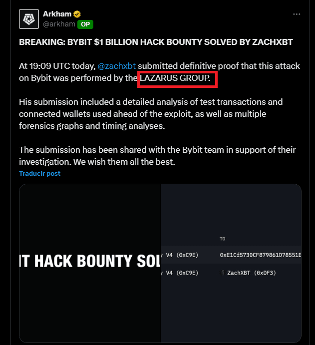 El viernes 21 de febrero, el investigador de #blockchain "Zach XBT" comunicaba en sus redes principales que existían unas salidas de dinero muy sospechosas del Exchange By...bit.