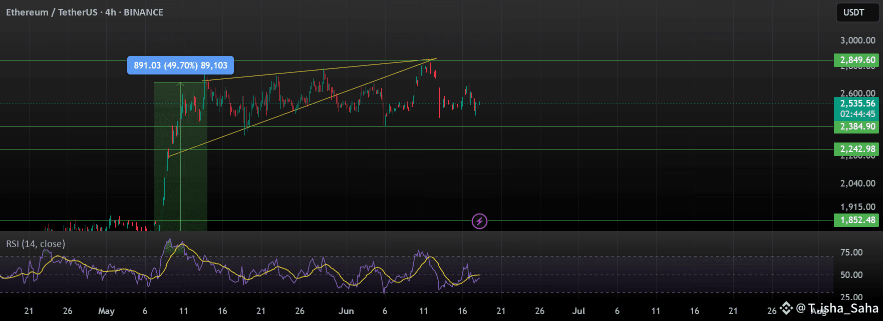 Ethereum failed to hold above the crucial resistance of $2,849 and has broken down from the ascending triangle on the 4H timeframe — invalidating the bullish breakout structure.