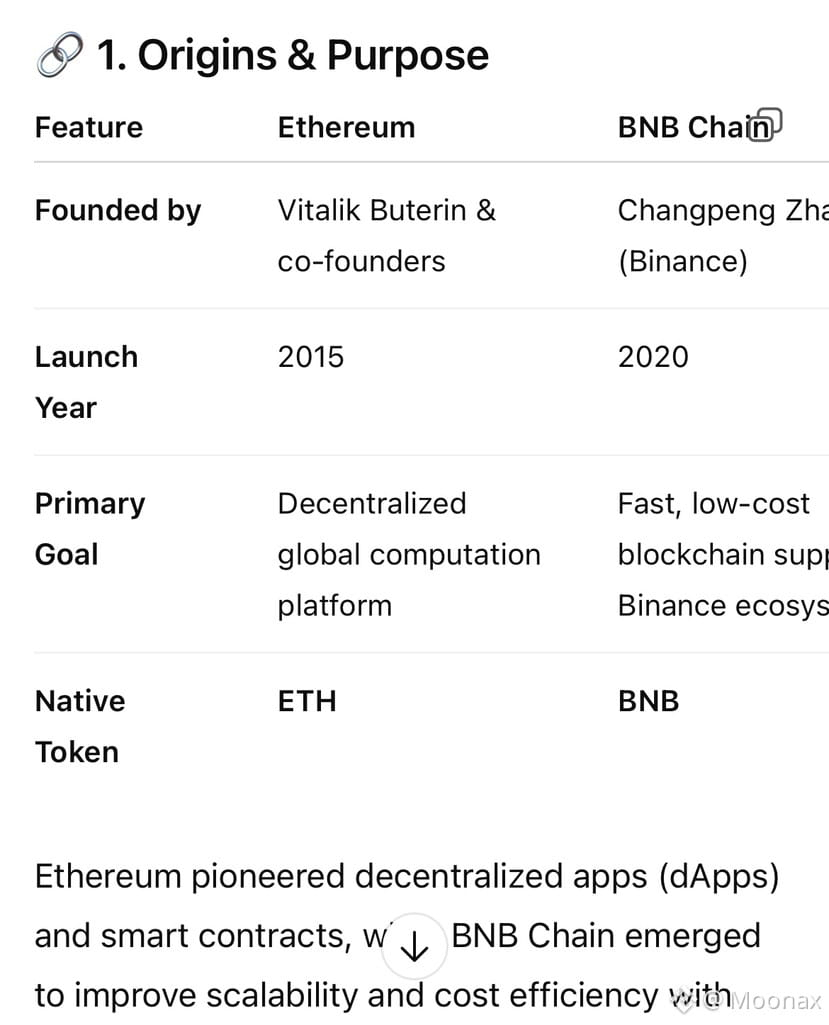 Ethereum pioneered decentralized apps (dApps) and smart contracts, while BNB Chain emerged to improve scalability and cost efficiency with strong ties to the Binance ecosystem.