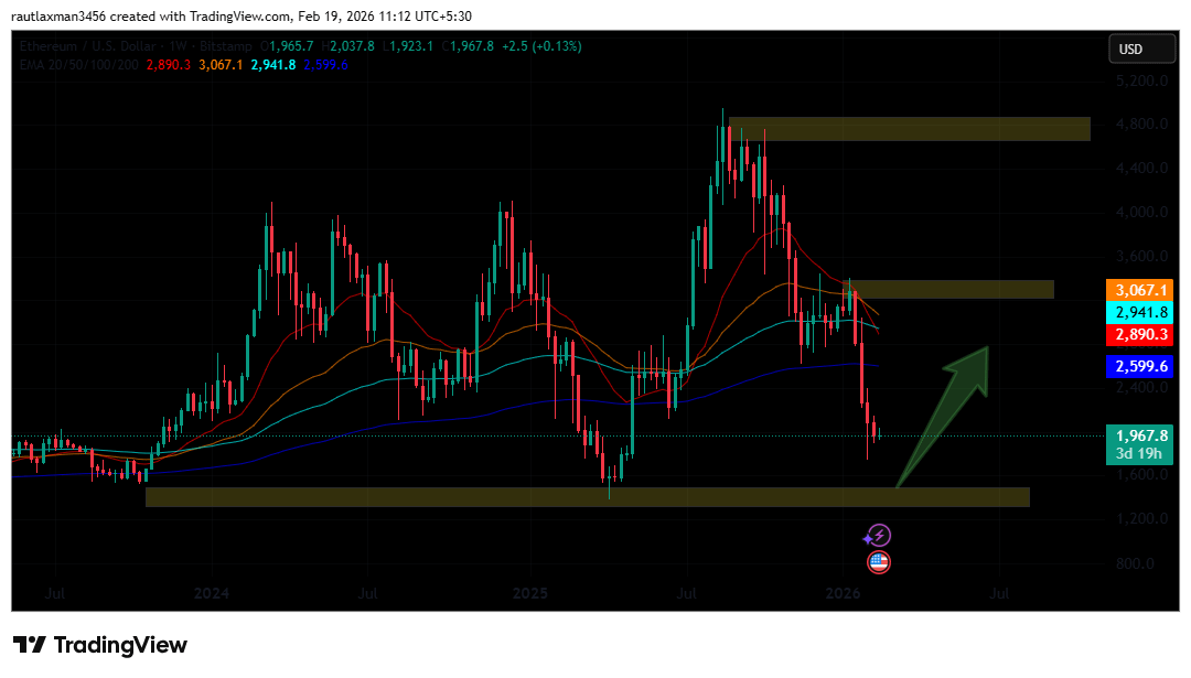 The arrow on the ETH chart (Image 1) suggests a potential target for a technical rebound toward the US$3,000 level, which would require reclaiming both the 100-week and 200-week EMAs. However, the immediate reality is a consolidation at the US$1,900 - $2,000 level, which has become a "ceiling" rather than a "floor".