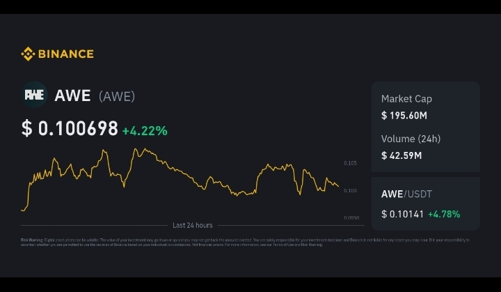 Over the last 24 hours, AWE has seen double‑digit gains (≈ +12–14%) on major exchanges like Binance. �