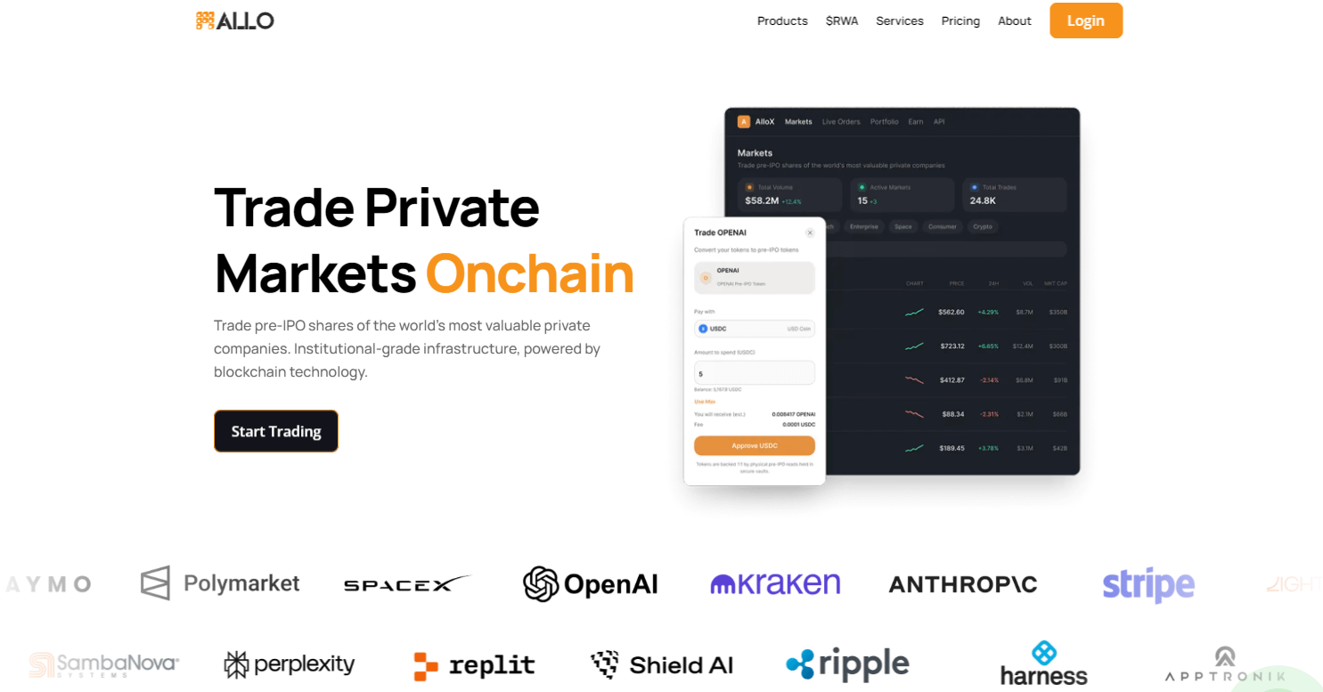 The tokenization of traditional finance assets is still in its early stages, but the trajectory is clear. By building the infrastructure for private market onchain trading, Allo Finance is enabling a future where pre-IPO stock is accessible to a global audience of investors.