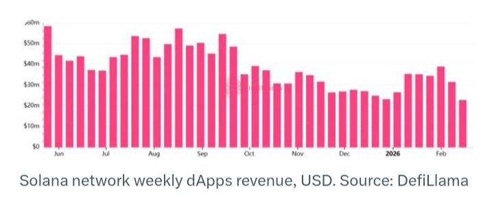 The weakness isn’t just visible in price charts. Activity across Solana’s decentralized app ecosystem is slowing too. Lower token prices reduce staking yields, shrink protocol revenues, and weaken incentives for long term holders. That combination risks creating a negative feedback loop where falling prices discourage usage, which in turn pressures prices further.