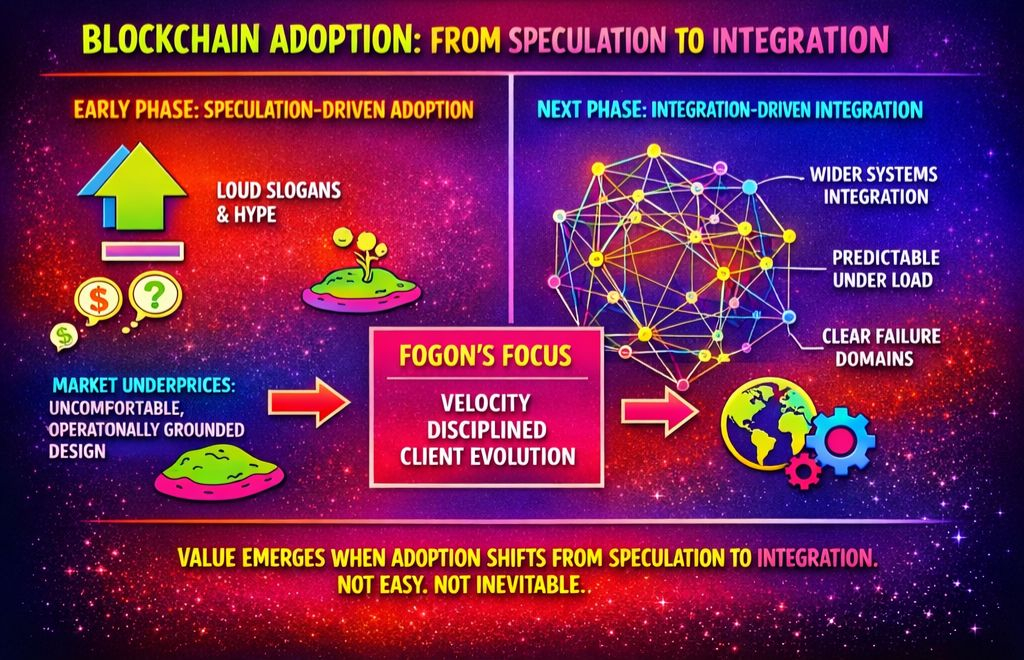That broader shift is the real context. As blockchains evolve into components of larger systems, the winners won’t be those with the loudest narratives — they’ll be the ones that behave predictably under load, define failure domains clearly, and acknowledge tradeoffs instead of hiding them. If that transition continues, Fogo’s focus on latency discipline, topology awareness, and measured evolution looks less like chasing benchmarks and more like preparing for the next phase of adoption — without pretending the path will be simple or inevitable.