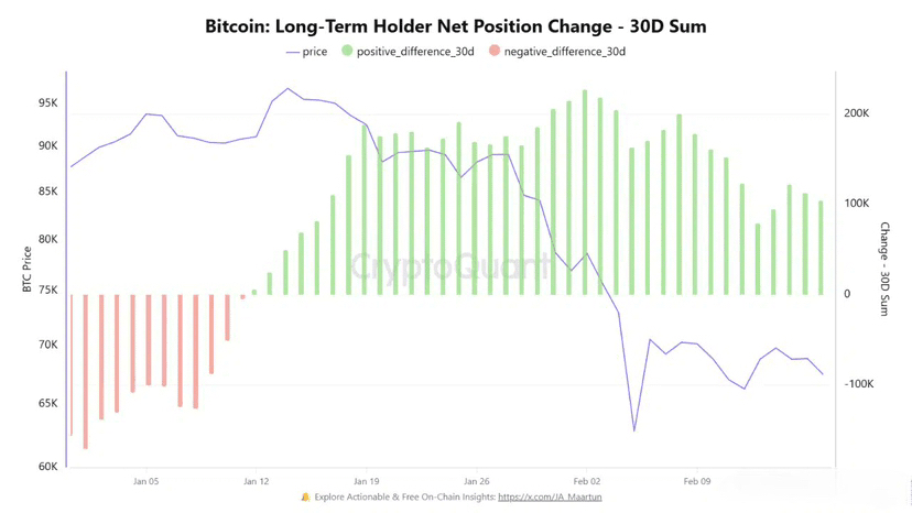 Long-term holders are historically the least reactive participants in the ecosystem. They don’t chase green candles. They don’t panic into volatility spikes. They tend to distribute into euphoria and accumulate into discomfort.
