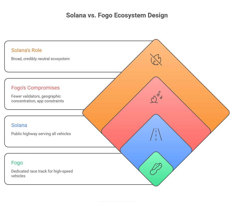 That would undermine Solana’s role as a broad, credibly neutral ecosystem. So instead, the market experiments with a parallel design where those compromises are explicit and opt‑in: Fogo.