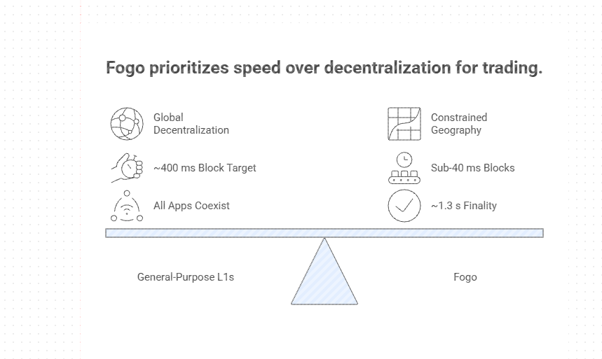 A general L1 cannot easily adopt those constraints without breaking its own decentralization and “serve everything” mandate, which is why Fogo exists as a separate, specialized chain.