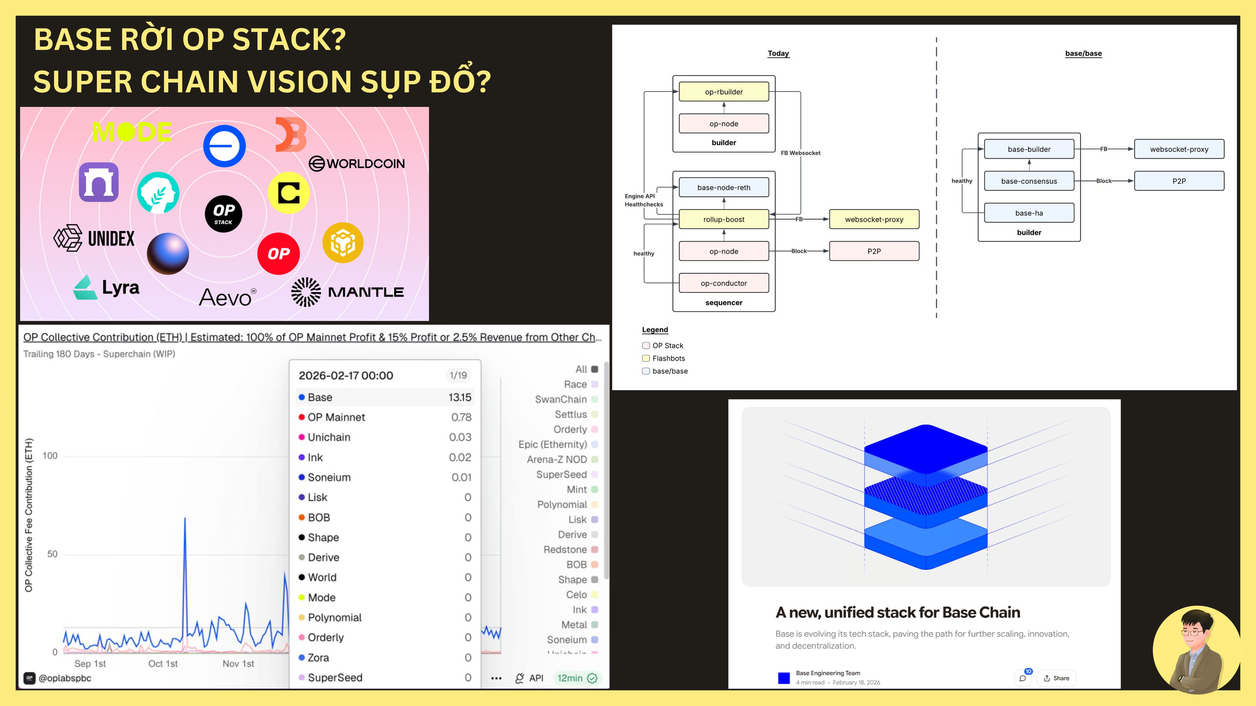 Ngày 18/02/2026, Base chính thức công bố chuyển sang unified stack do chính mình quản lý. Đây là một trong những sự kiện quan trọng nhất của hệ Layer-2 Ethereum kể từ khi Base ra mắt năm 2023.