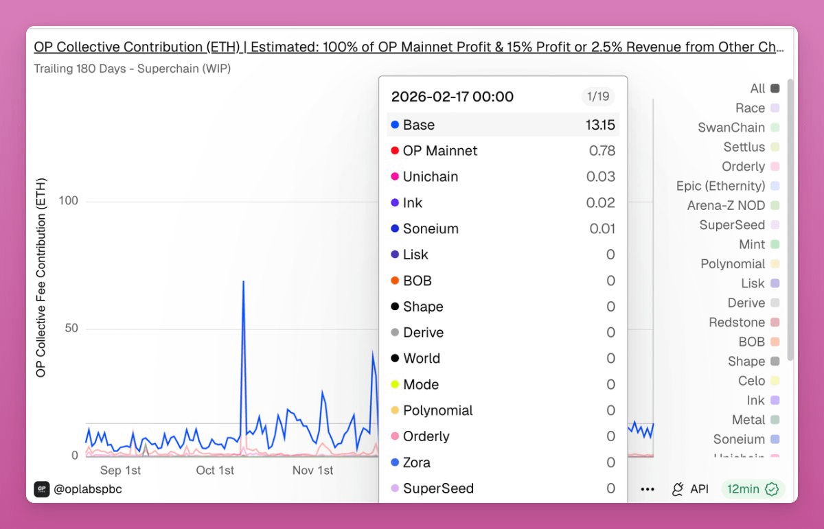 - Trong khi toàn bộ các chain Superchain khác cộng lại chỉ 0.84 ETH/ngày (trong đó OP Mainnet 0.78 ETH, Unichain 0.03 ETH, Ink 0.02 ETH, còn lại gần như bằng không).