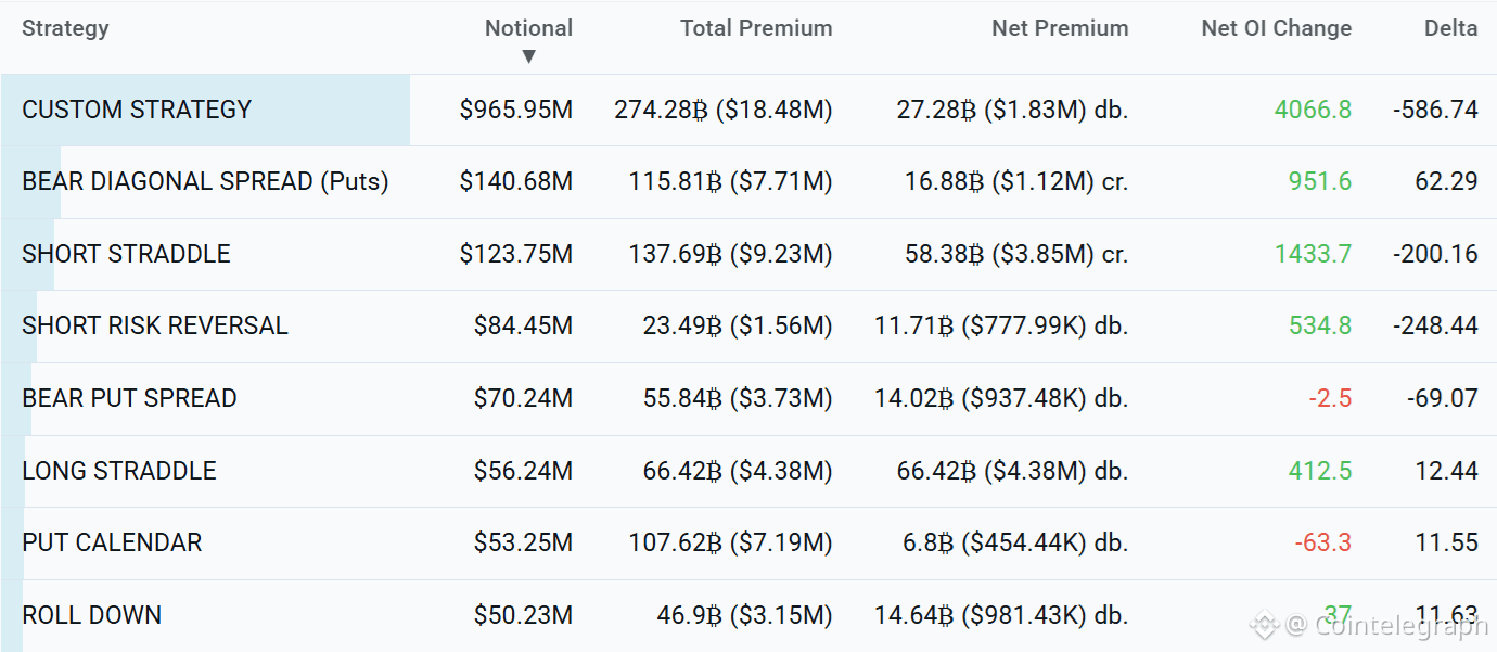 Top BTC options strategies at Derbit past 48h, USD. Source: Laevitas.ch