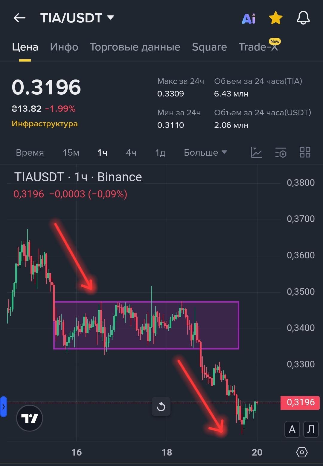 🔹 Консервативно — после пробоя нижней границы и ретеста