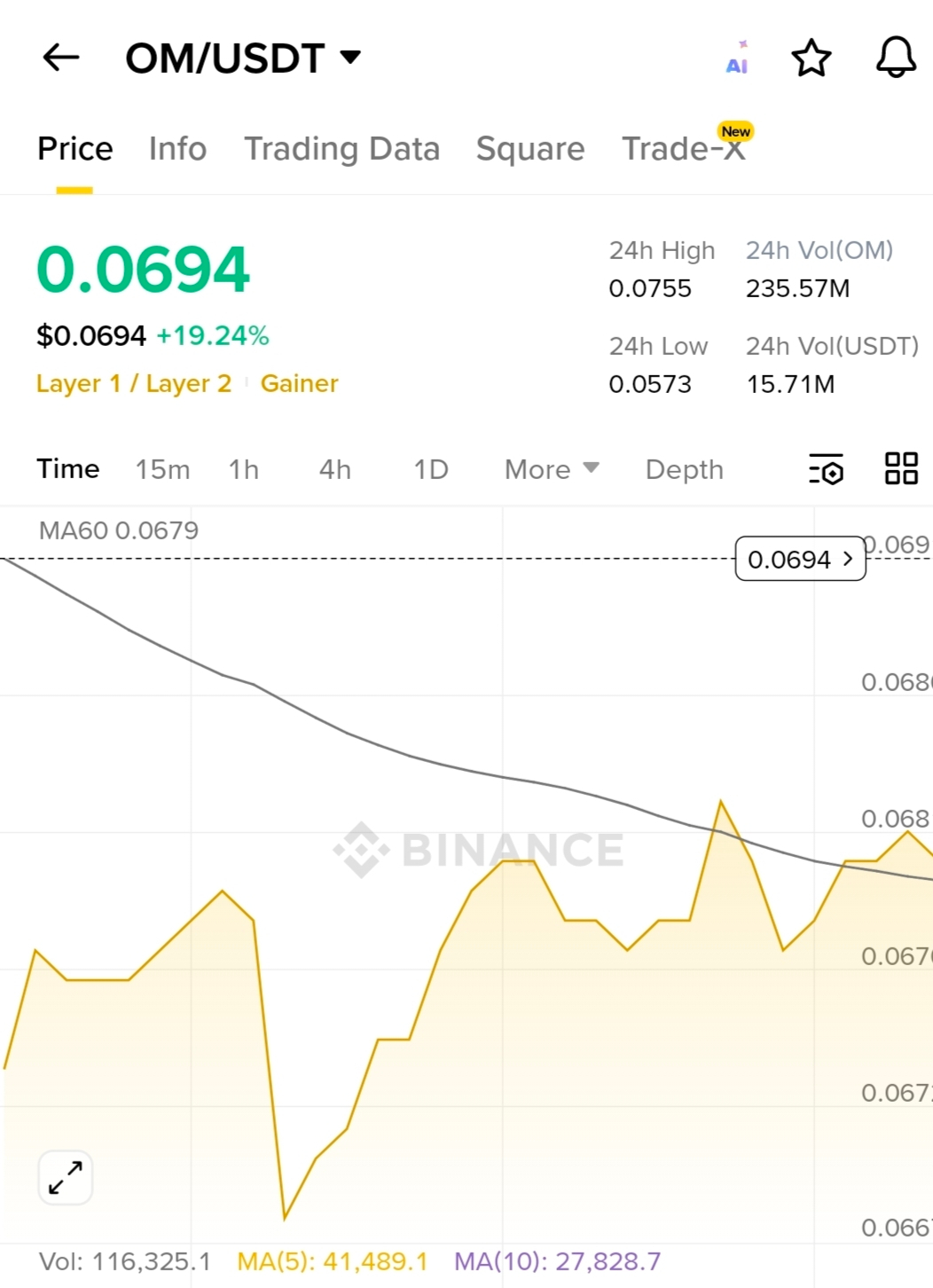 $OM /USDT: 0.0694