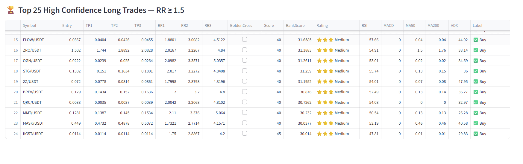Success in this market isn't about guessing; it's about following the data when the Risk-to-Reward (RR) ratio is heavily in your favor. While others are searching for direction, our latest Top 25 High Confidence scan has identified clear structural breakouts with massive upside potential.