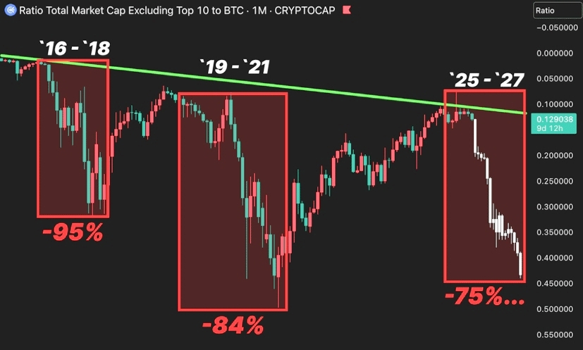 The ALTs/BTC ratio just flashed the same chilling signal that wiped out the market twice before. History doesn't lie, but it sure as hell repeats itself: