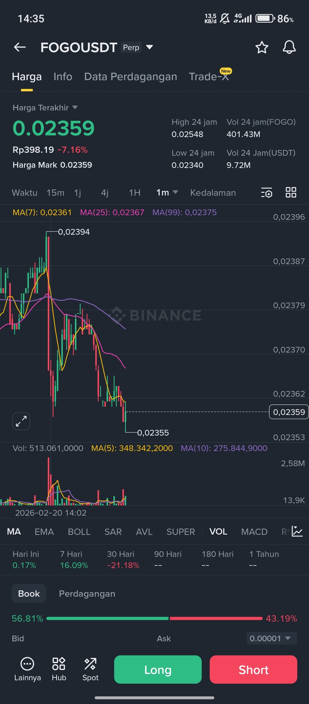Squeeze Risk: Above $0.0355 → could trap shorts, but the current position indicates a low probability of a squeeze.