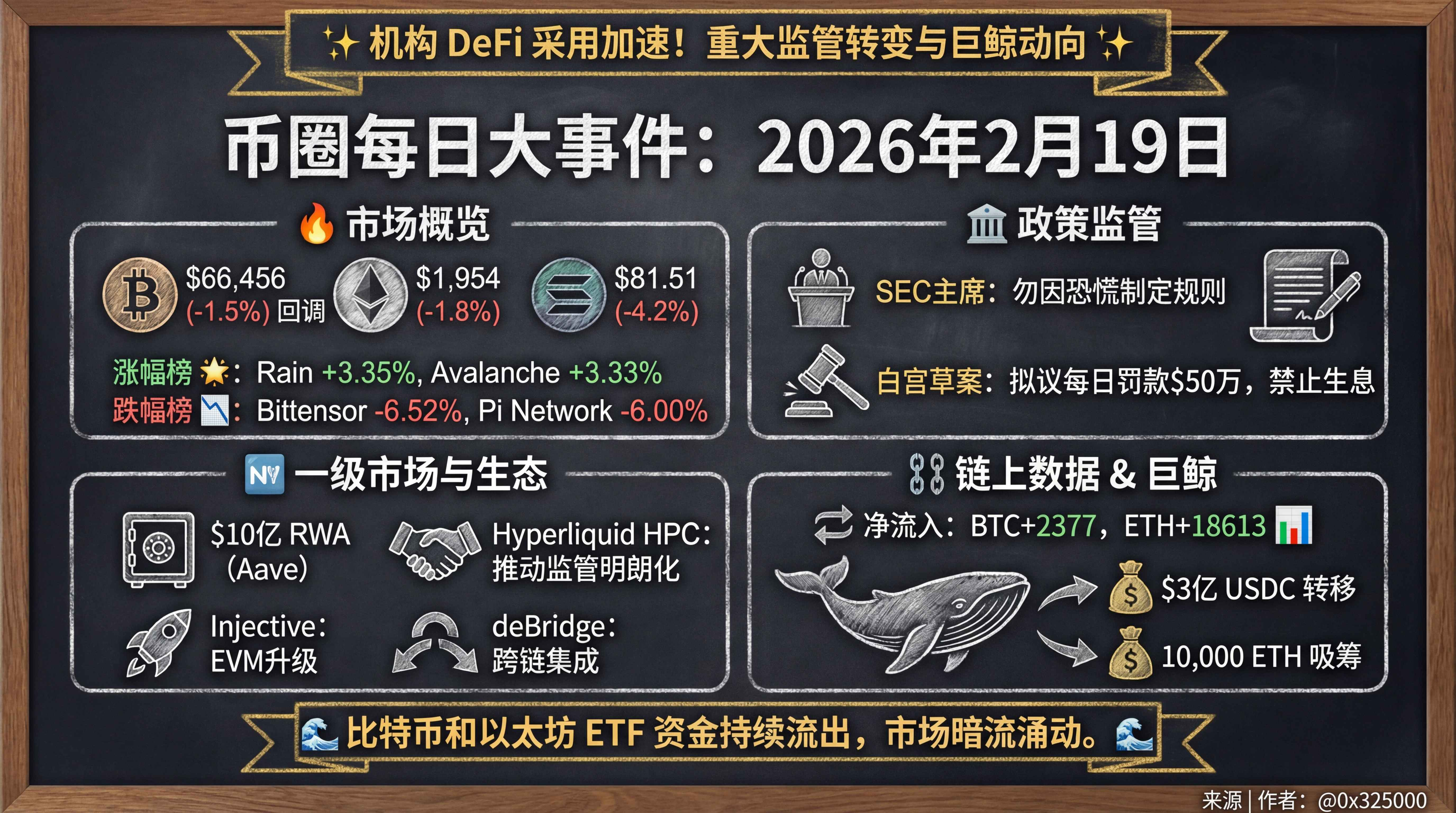 比特币收盘 $66,456(-1.5%),小幅回调;