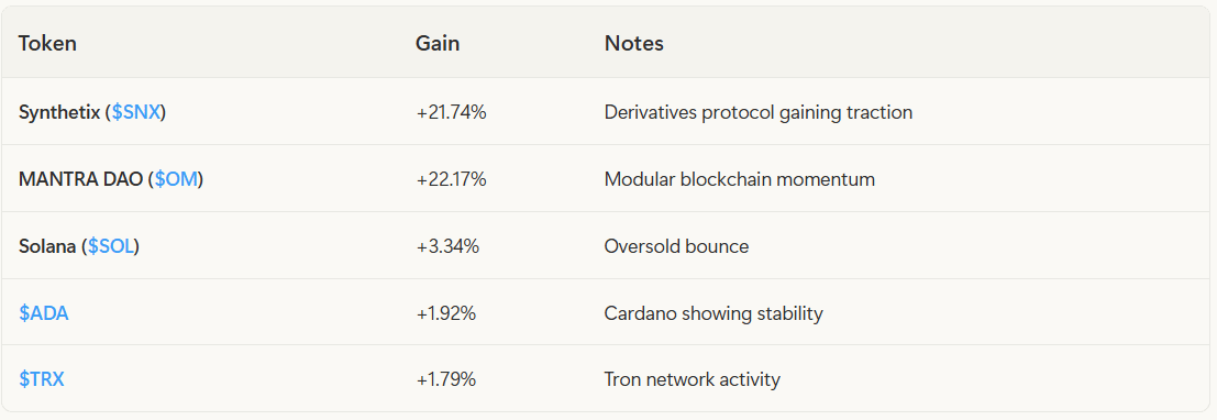 Key Insight: The market is showing selective strength in specific narratives (derivatives, modular blockchains) while broader altcoins struggle. This suggests capital is rotating into perceived "safer" or "higher-conviction" plays rather than broad-based altcoin recovery.